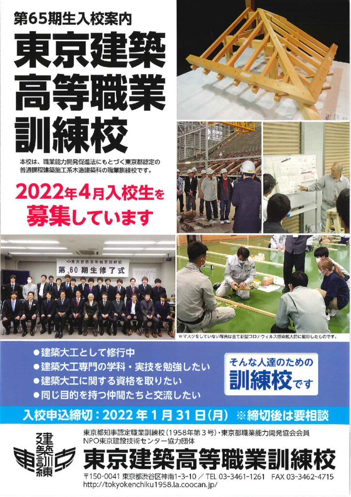 東京建築高等職業訓練校のお知らせ